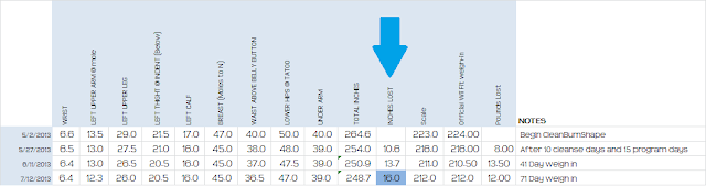 Here is my chart. Total inches lost now up to 16. And the two pounds could very well be water from the salty dressing on my salad last night. Or the sugar from all the treats served at work yesterday....harrumph.